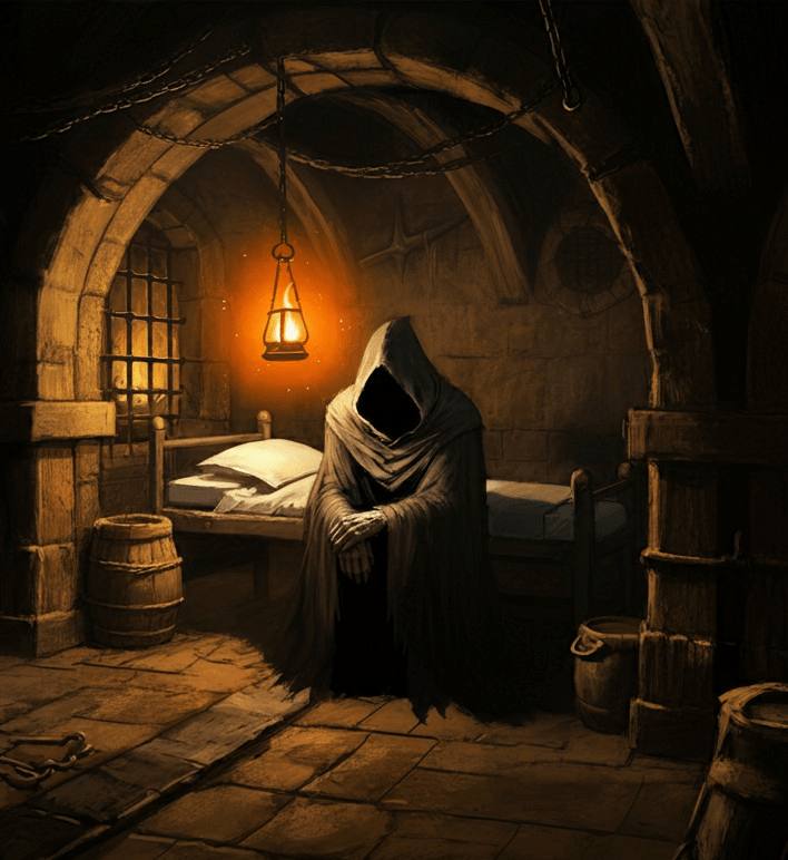 Prison Guard officer Cael and his 5 Prison Guard goons (See Appendix B) are so fixated on torturing their victim that they do not notice the players enter. The players are guaranteed a surprise round if they do nothing to get their attention.