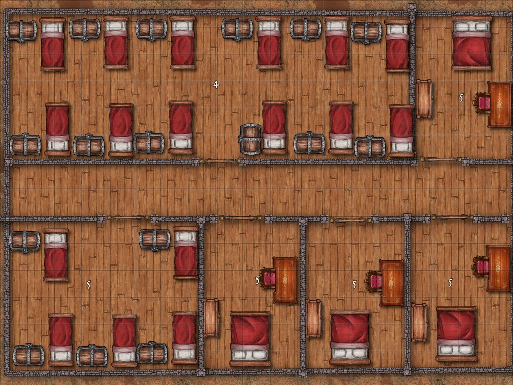 Ten infantrymen are sleeping in the room. The players can move through the room without waking them by making a DC14 group stealth check.