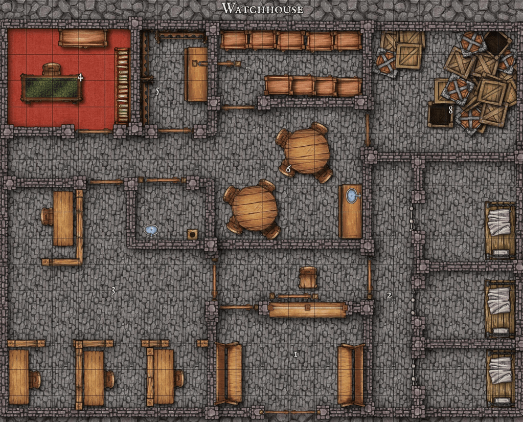 The players encounter a group of 1d6 detectives investigating a crime, with another 1d10 watchmen securing the scene. Whether the crime is legitimate or one of the “crimes” Murtagh, the commanders, or corrupt watchmen invent is up to you to decide. Regardless of the legitimacy of the crime, if the players are not careful, the detectives will spot the players and recognize them as the leaders of the resistance in the city and order the watchmen to apprehend the players. The players must either find another way around or make a stealth check with disadvantage to pass.