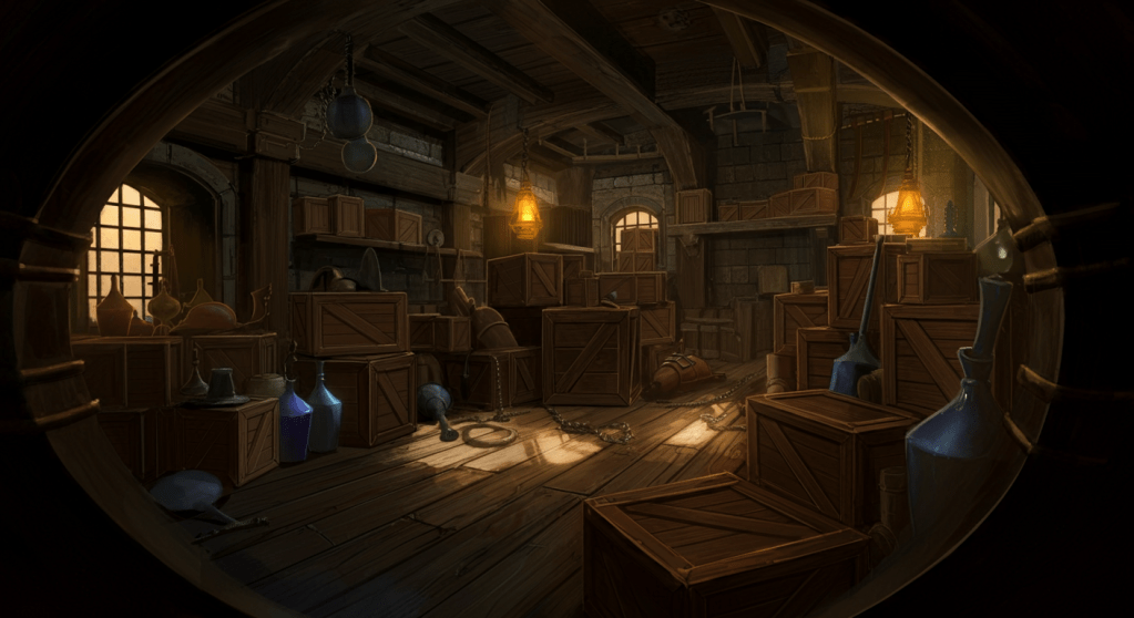 Supplies. The crates are filled with the fort’s consumable supplies, such as candles, lantern oil, uniforms, non-perishable foodstuffs, and knife sticks.