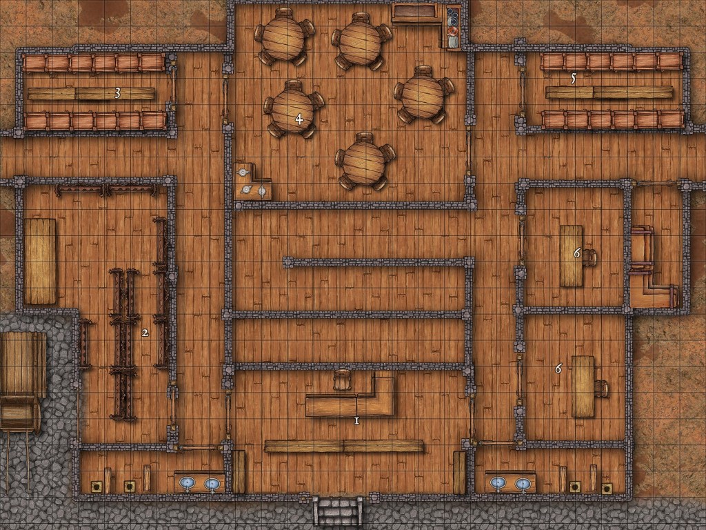 Treasure: The lockers mainly contain civilian clothing and small personal care items. However, the players can find an inlaid flask worth 5gp in one of the lockers and two purses with 5 gp each in two of the other.