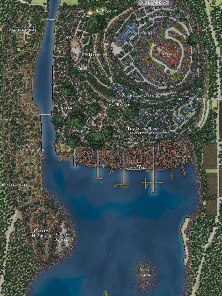 I think this is my best map of Sliberberg yet, it really captures the feel of a fairytale city crossbred with a fairytale forest