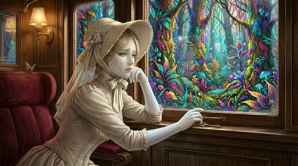 Charlotte Evermore jolted awake with a scream, her gears racing, her breathing heavy. At once, her hands flew to her breasts. “It was just a dream, it was just a dream,” she whispered to herself in terrified tones, “Aedan is still dead, you are not still stuck in the golden palace. The rocking of the train simply lulled you to sleep.”