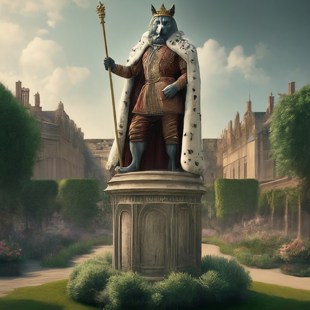 Exiting the entrance hall, you step into the castle’s central courtyard, a breathtaking garden bathed in the soft glow of magical light. The air is fragrant with the scent of otherworldly flowers, and the ground is adorned with lush, vibrant vegetation. A majestic statue of King Fredrick the Beastman stands proudly in the center of the courtyard, capturing his regal presence. The statue is surrounded by a mesmerizing array of fey creatures carved into the stone, creating an enchanting scene.