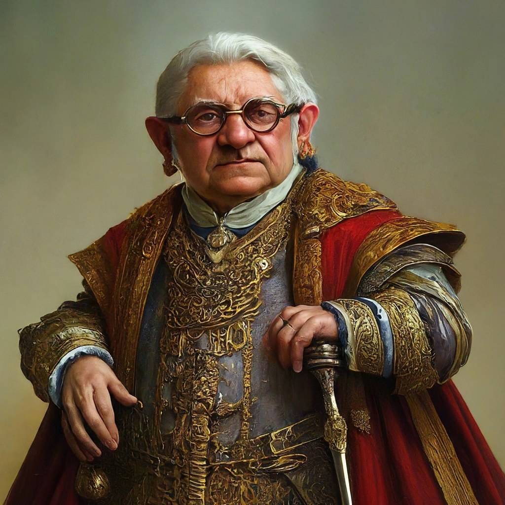 Chancellor Bartholomew Gearspark, a middle-aged gnome with a penchant for impeccable fashion, serves as the astute and cunning overseer of King Fredrick’s court. Clad in opulent garments adorned with rich fabrics and intricate embroidery, Bartholomew is the epitome of late medieval high fashion. His outfits, often in deep, regal colors, reflect both his status and his commitment to maintaining an air of aristocratic sophistication.