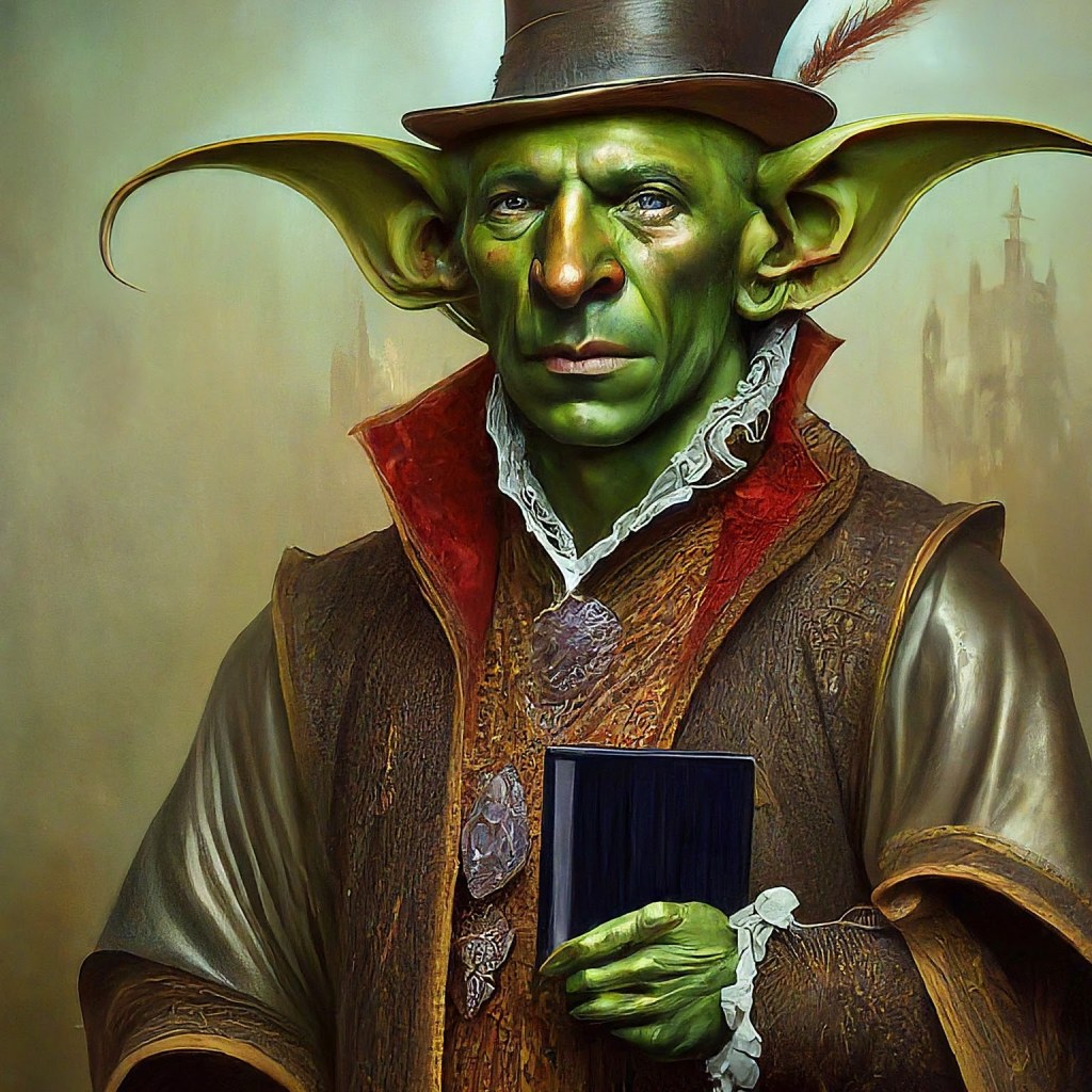 Eamon Swiftglen, the solemn Celtiru (feywild goblin) Steward of King Fredrick’s court, carries the weight of tradition on his shoulders with unwavering dedication. Standing at an average height for a goblinoid, Eamon’s olive-green skin and keen eyes reflect his Celtic heritage. His hair is meticulously slicked back, adding an air of precision to his appearance.
