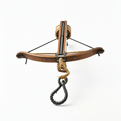 As an action, the user can launch a grappling hook with a thin, magically reinforced cable using the crossbow. The grappling hook has a range of 100 feet and can attach to any surface or creature of size large or larger.